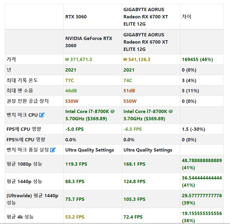 지포스에서는 RTX3060 이 눈에 들어옵니다.