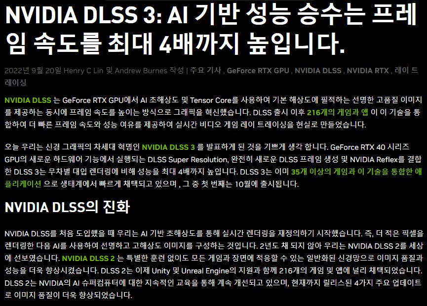 이번에 신규로 발표한 DLSS 3.0 은 그보다 월등한 프레임 향상을