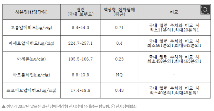 17년도 발표한 자료를 첨부 했는데 궐련형 전자담배도 생각보다는 유해성분 수치가 많이 발생해 놀랐습니다.