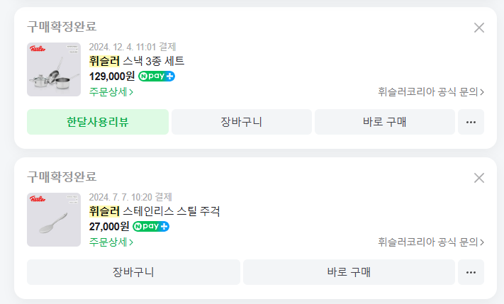 23년 9월 이후로 꾸준히 휘슬러 제품만 사용한 것은 아닙니다.