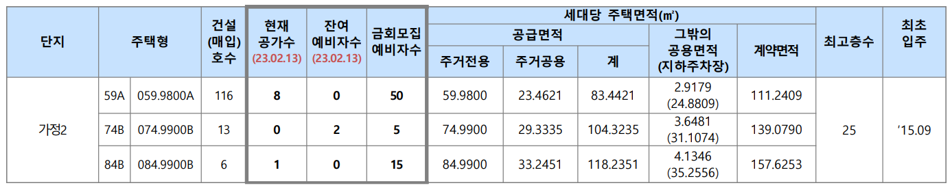예비 입주자 모집이지만 59A , 84B 타입의 경우 잔여 예비자가 없습니다.