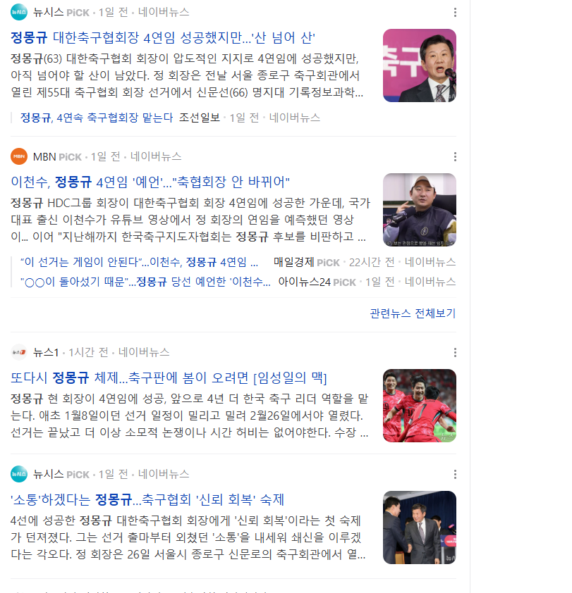 정몽규 회장이 4선에 성공한 것은 대중이 원해서 인가? 가장 유능한 사람인가? 나는 모르겠다.