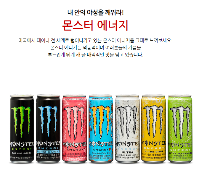 코카콜라의 에너지 음료는 몬스터 입니다.