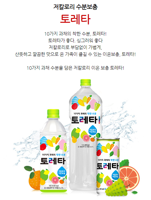 출시한 제품 중 이온음료는 토레타가 있습니다.