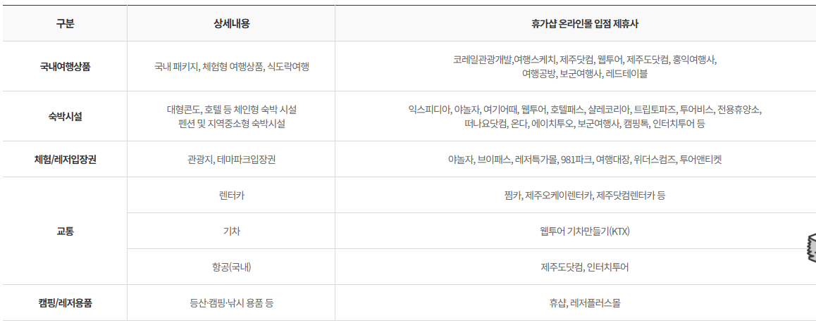 저는 3년 차 휴가샵을 이용하고 있습니다. 작년에는 AK온라인몰이 제휴사였는데 올해 아이디를 생성해 보니 사라졌습니다. AK몰이 가장 살만한 것이 많았는데 아쉽습니다. 휴가샵은 신청을 하게 되면 작년에 했더라도 신규 아이디를 만들어야 합니다.